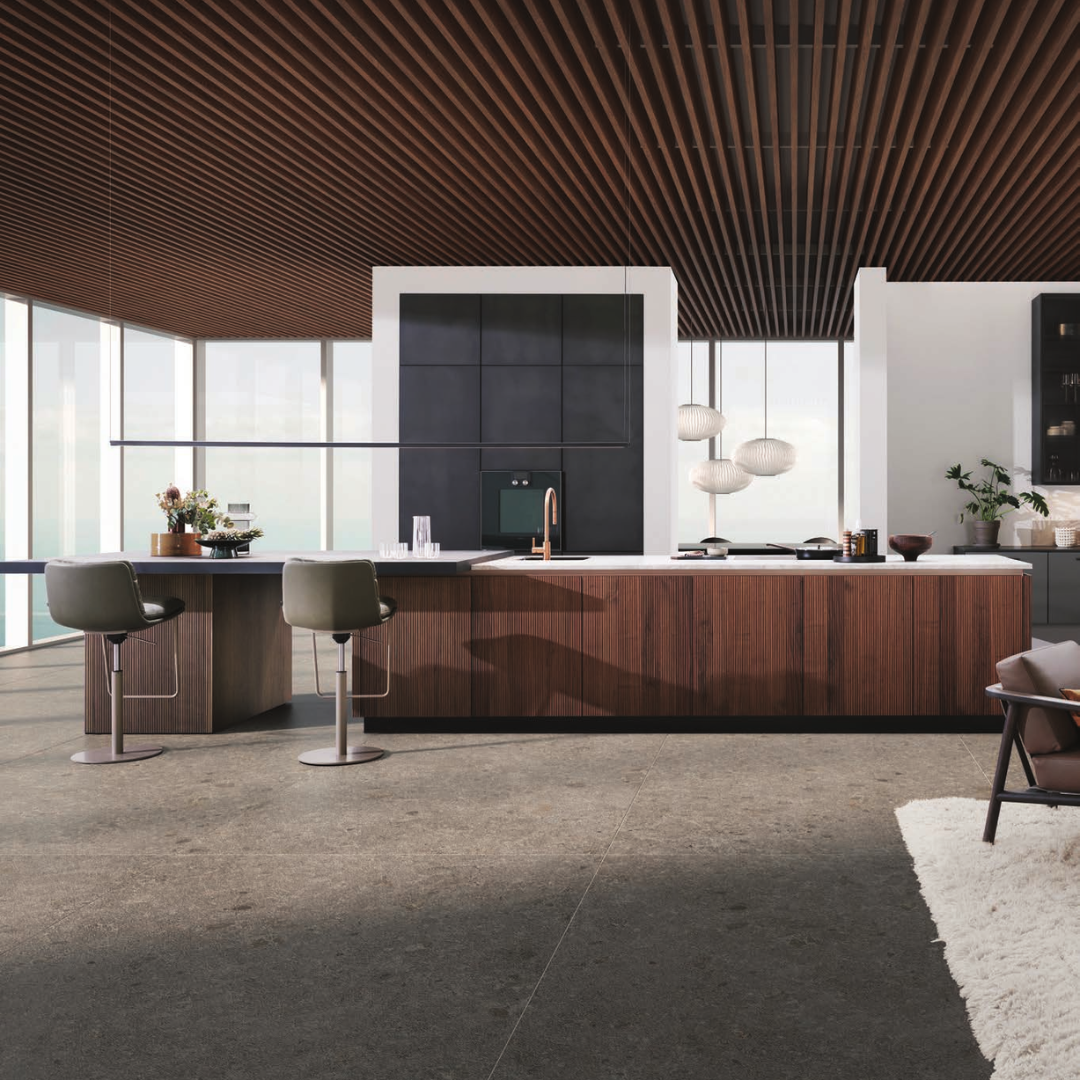 Discover BAHIA from LEICHT Küchen! Unique veneer front with vertical groove structure – timeless style for your dream kitchen.